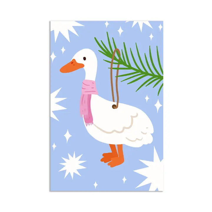 Χριστουγεννιάτικη mini ευχετήρια κάρτα - ετικέτα δώρου Christmas cute Goose 5.5x8.5εκ.