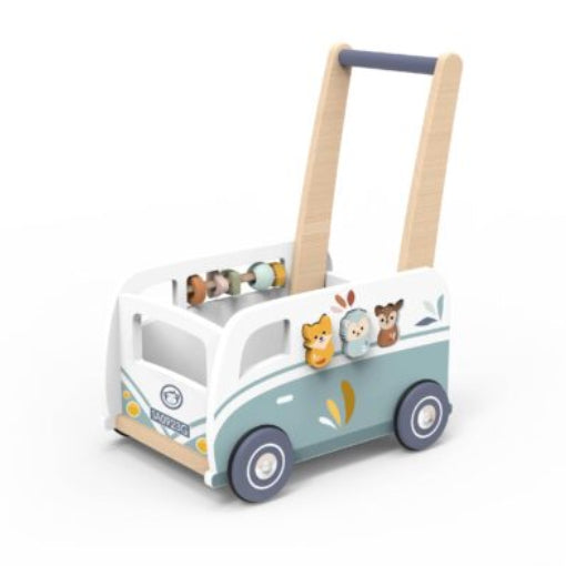 Ξύλινο ρετρό βανάκι περπατήστρα με δραστηριότητες 1-3 ετών 37x26x45 cm Speedy Monkey