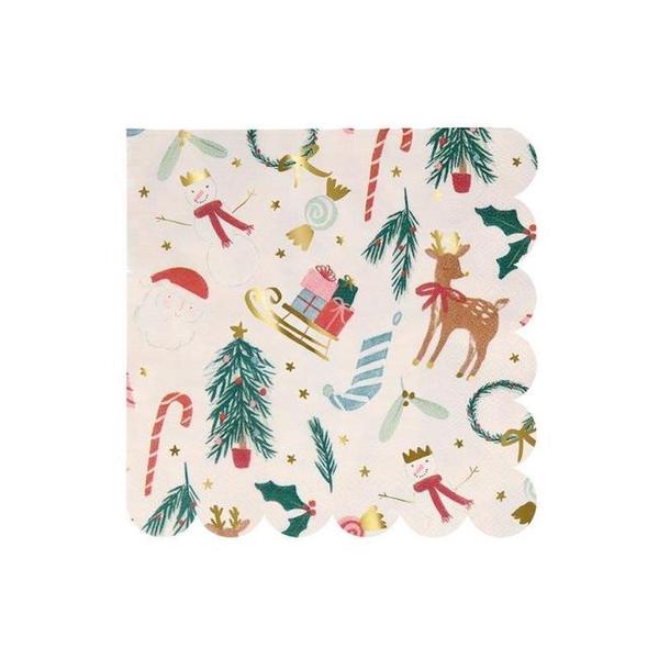 Σετ 16 μεγάλες χαρτοπετσέτες μεγάλες ριγέ χριστουγεννιάτικες - Meri Meri 16.5x16.5cm