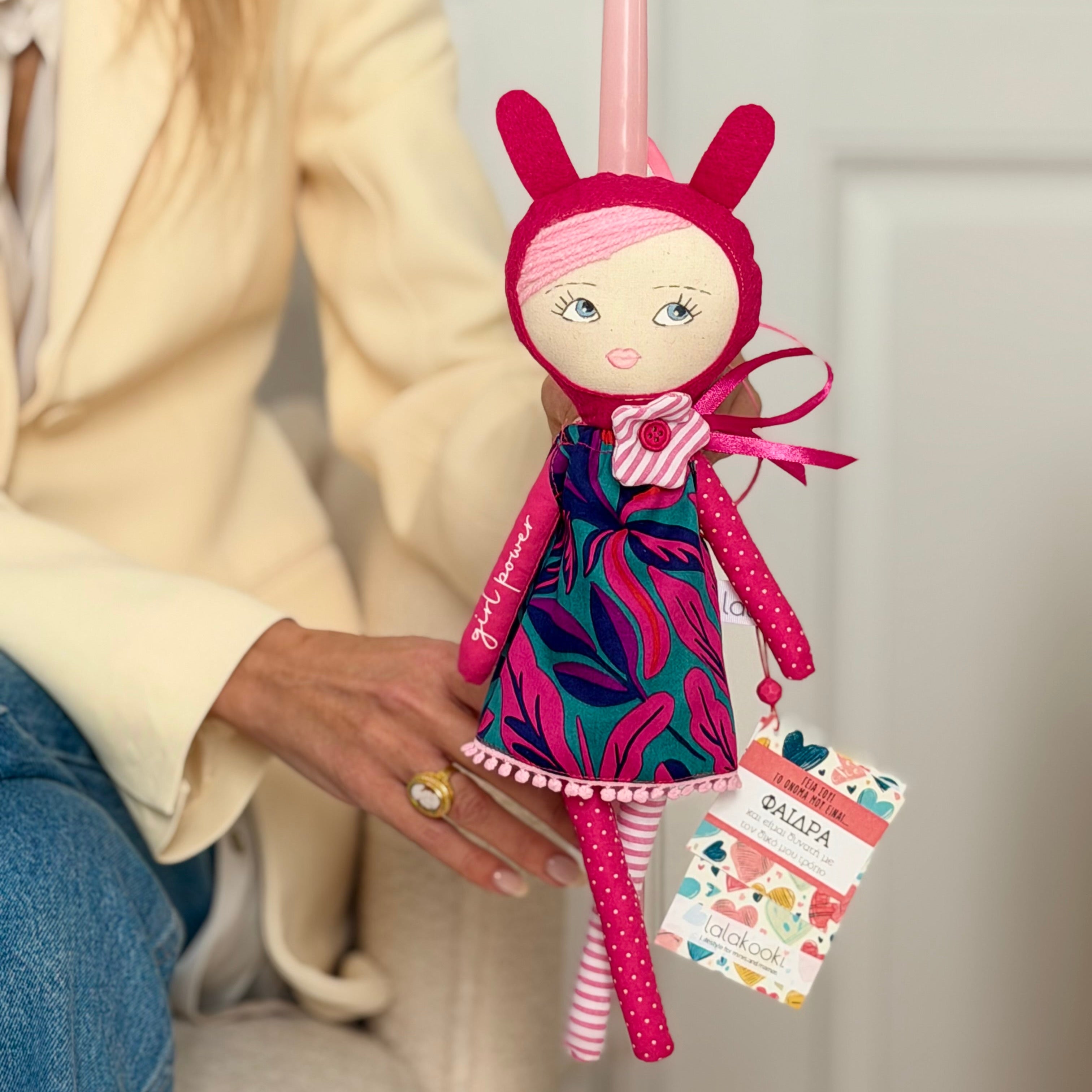 Ραμμένη στο χέρι με υψηλής ποιότητας υλικά, η Φαίδρα συνδυάζει τη γλυκύτητα της παιδικότητας με τη δυναμική ενέργεια μιας σύγχρονης ηρωίδας.