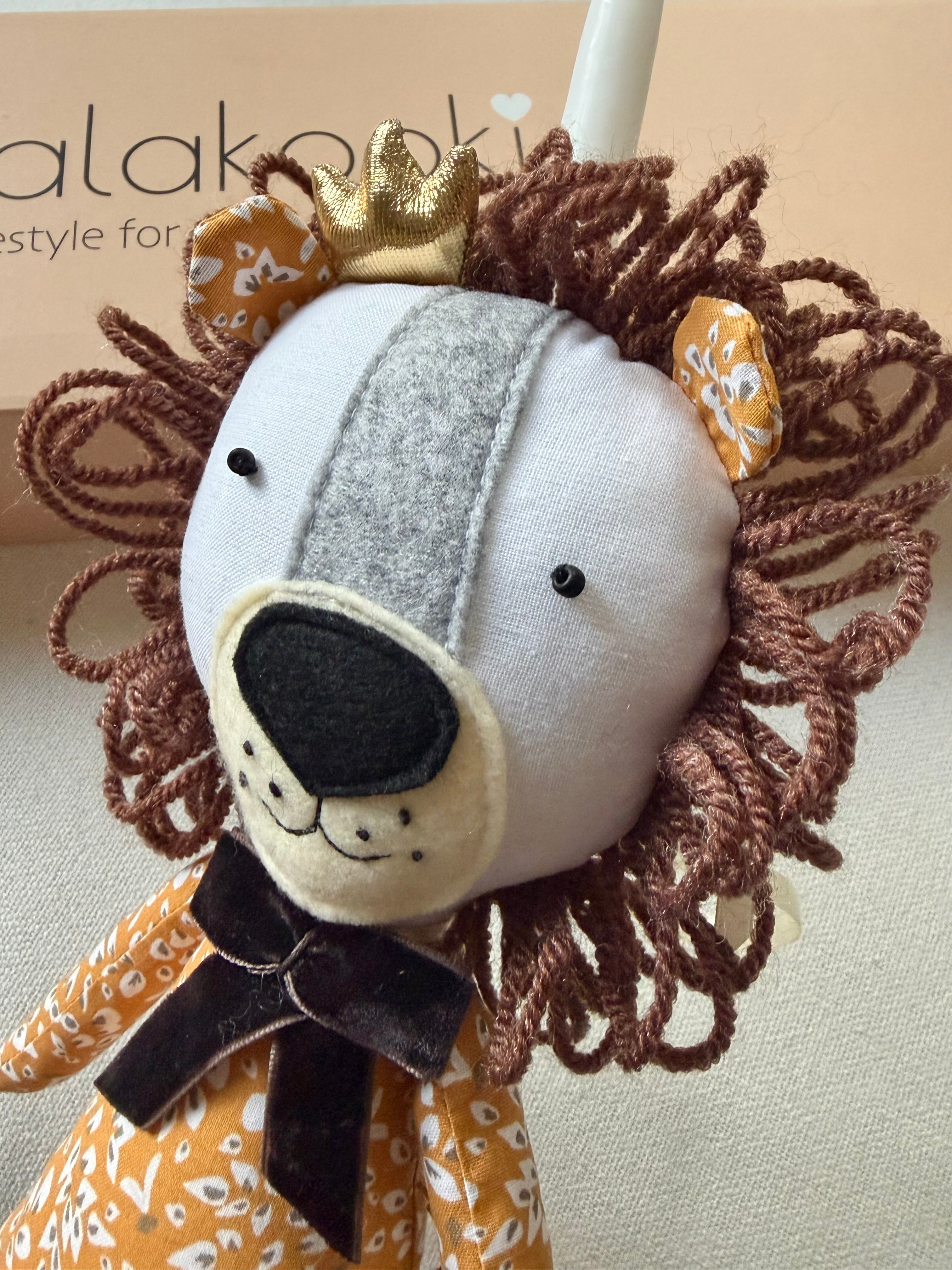 Πασχαλινή λαμπάδα με χειροποίητο υφασμάτινο λιοντάρι, ραμμένο με βαμβακερά υφάσματα.