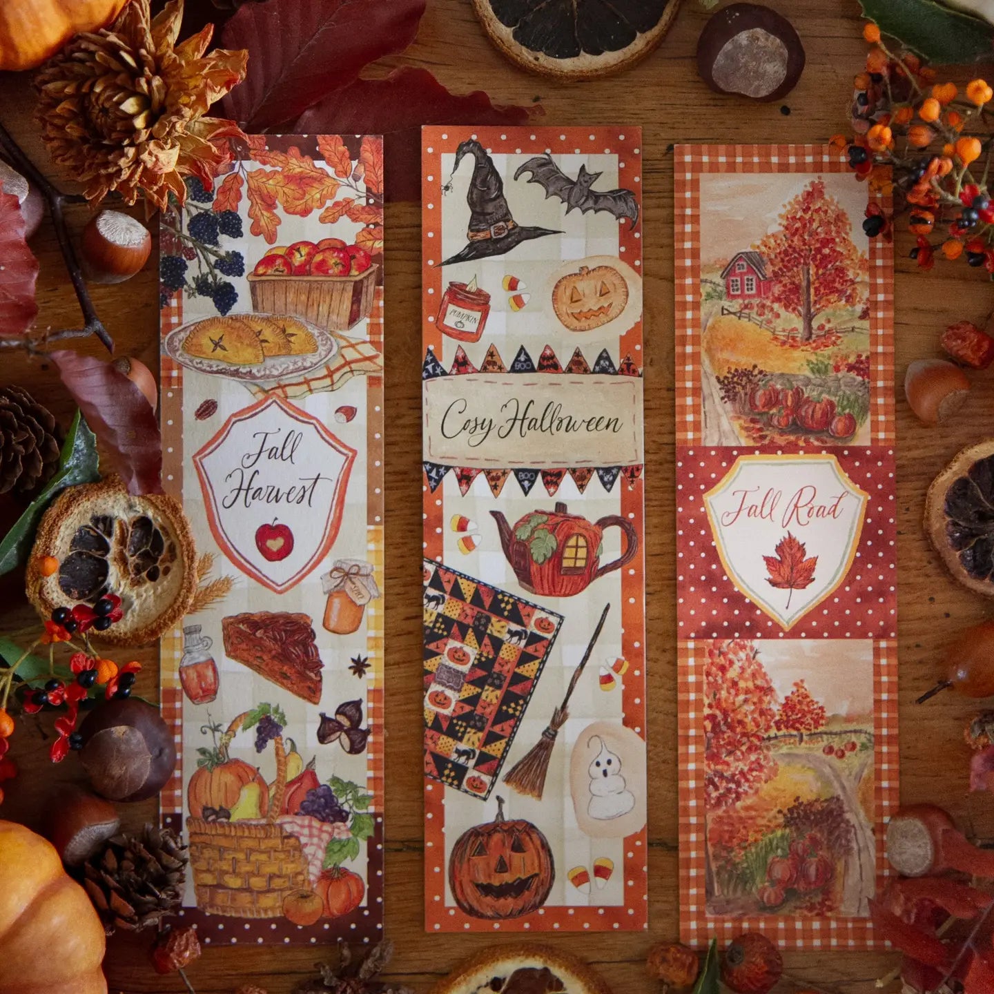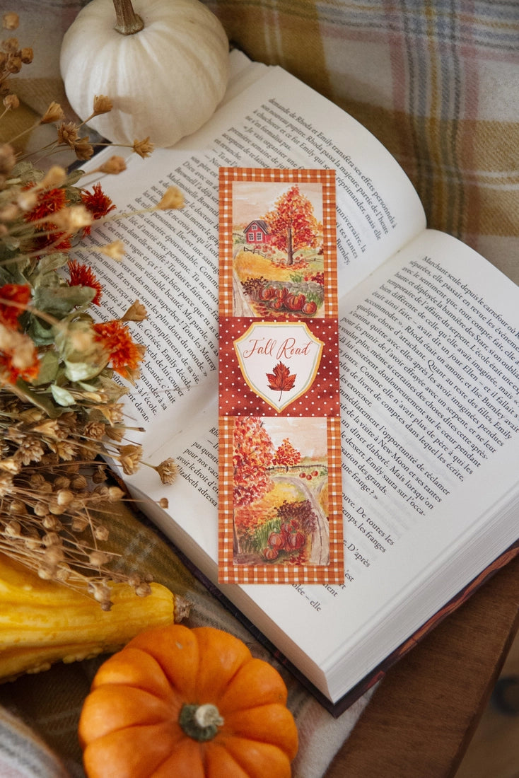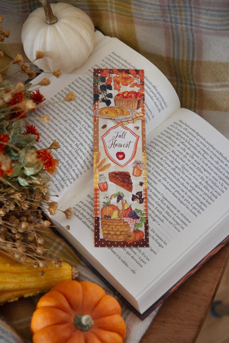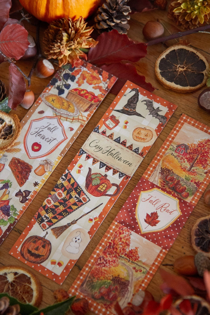 Σετ από 3 εικονογραφημένους σελιδοδείκτες διπλής όψης με θέμα την αφθονία του φθινοπώρου, για να συνοδεύει τις εποχιακές σας αναγνώσεις δίπλα στο τζάκι.