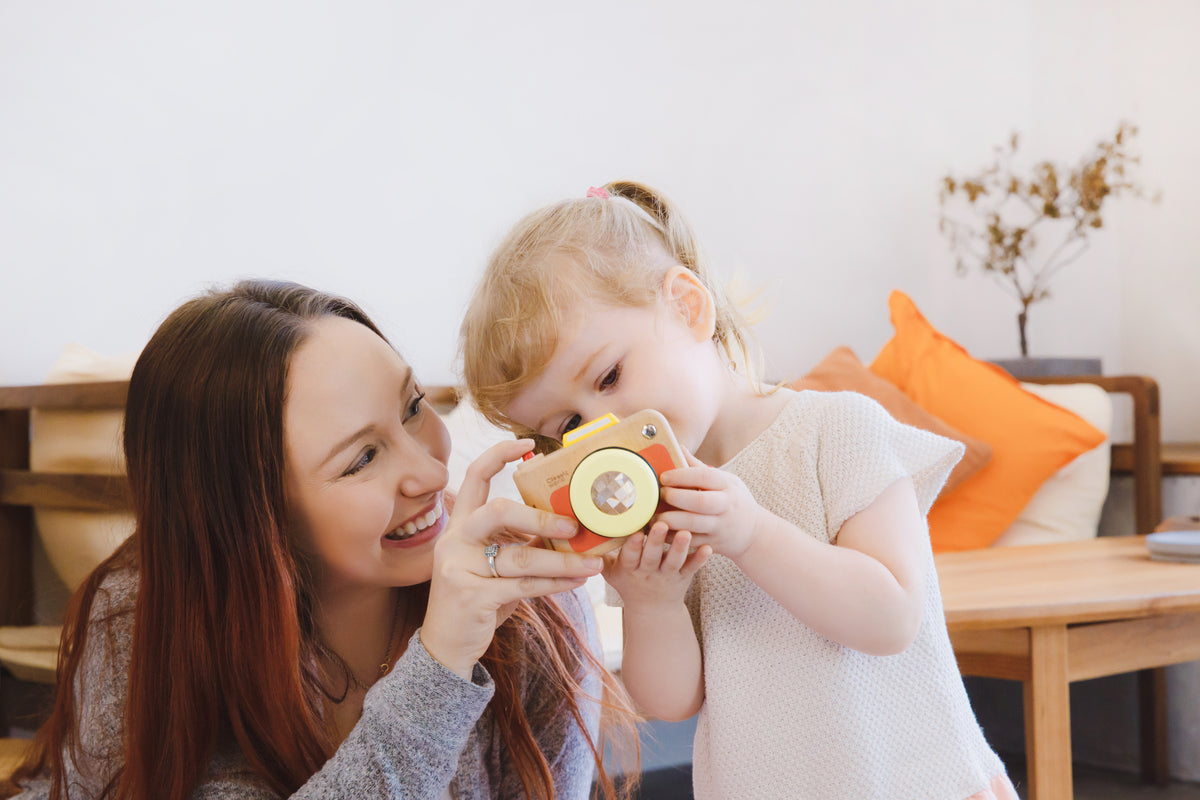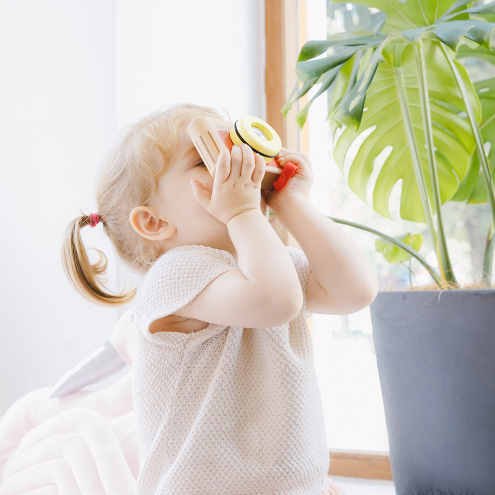 Χαμογελάστε! Απαθανατίστε κάθε στιγμή με αυτήν την βίντατζ φωτογραφική μηχανή. Δείτε μέσα από τον περιστρεφόμενο φακό για να ανακαλύψετε έναν νέο κόσμο. Χάρη στο οπτικοκινητικό ερέθισμα που προσφέρει, συμβάλλει στην ανάπτυξη της περιέργειας των παιδιών.