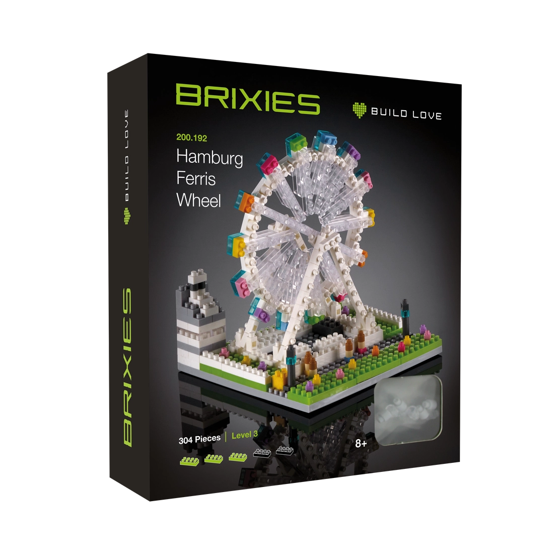 Το σετ "BRIXIES Ferris Wheel" αποτελείται από συνολικά 304 κομμάτια και είναι κατάλληλα για ηλικίες 8 ετών και άνω. Τα δομικά στοιχεία είναι κατασκευασμένα από πλαστικό ABS υψηλής ποιότητας και πληρούν τα πιο πρόσφατα πρότυπα ασφαλείας. Αυτό το κιτ επιπέδου 3 δυσκολίας προάγει την επιδεξιότητα και τη συγκέντρωση και είναι ταυτόχρονα πολύ διασκεδαστικό.