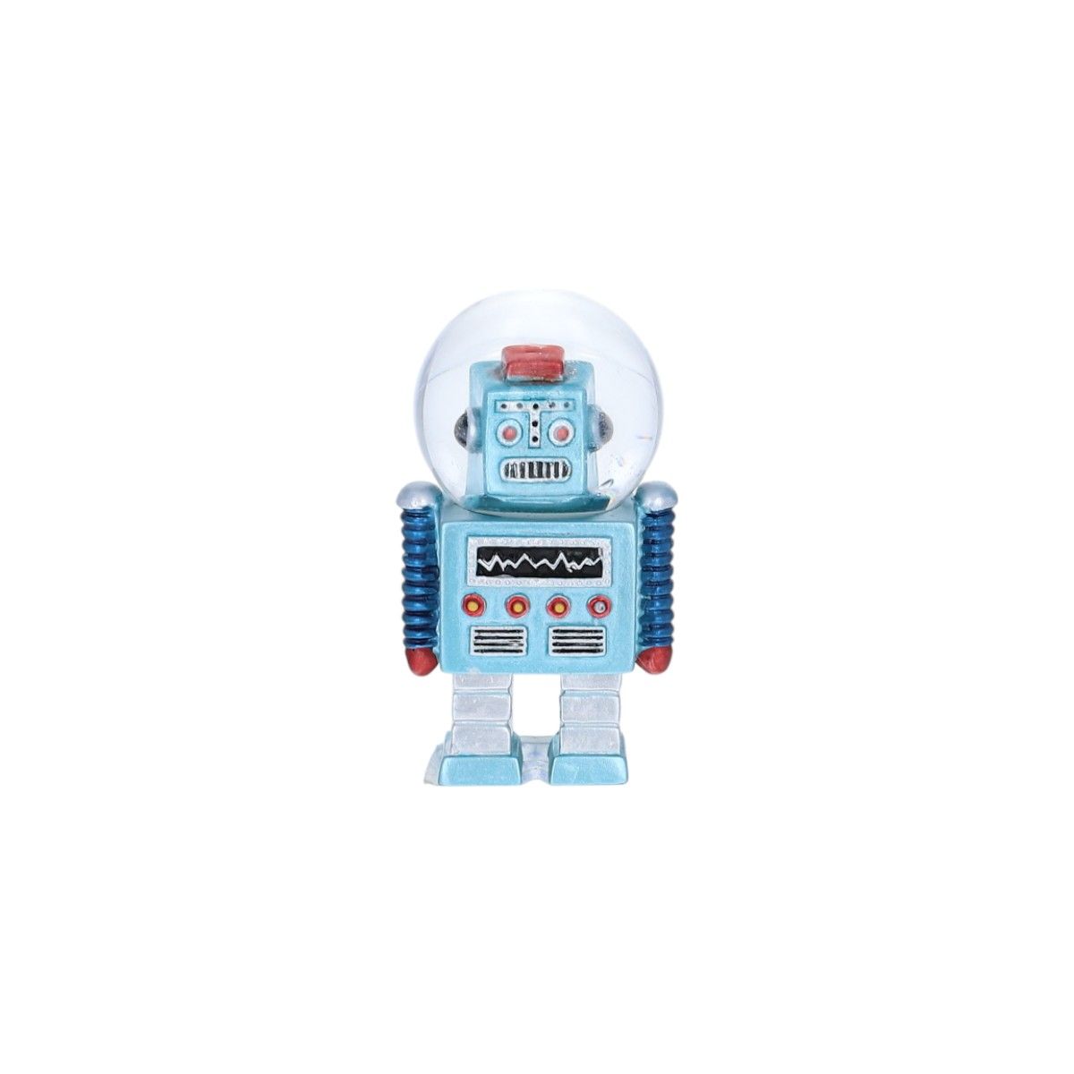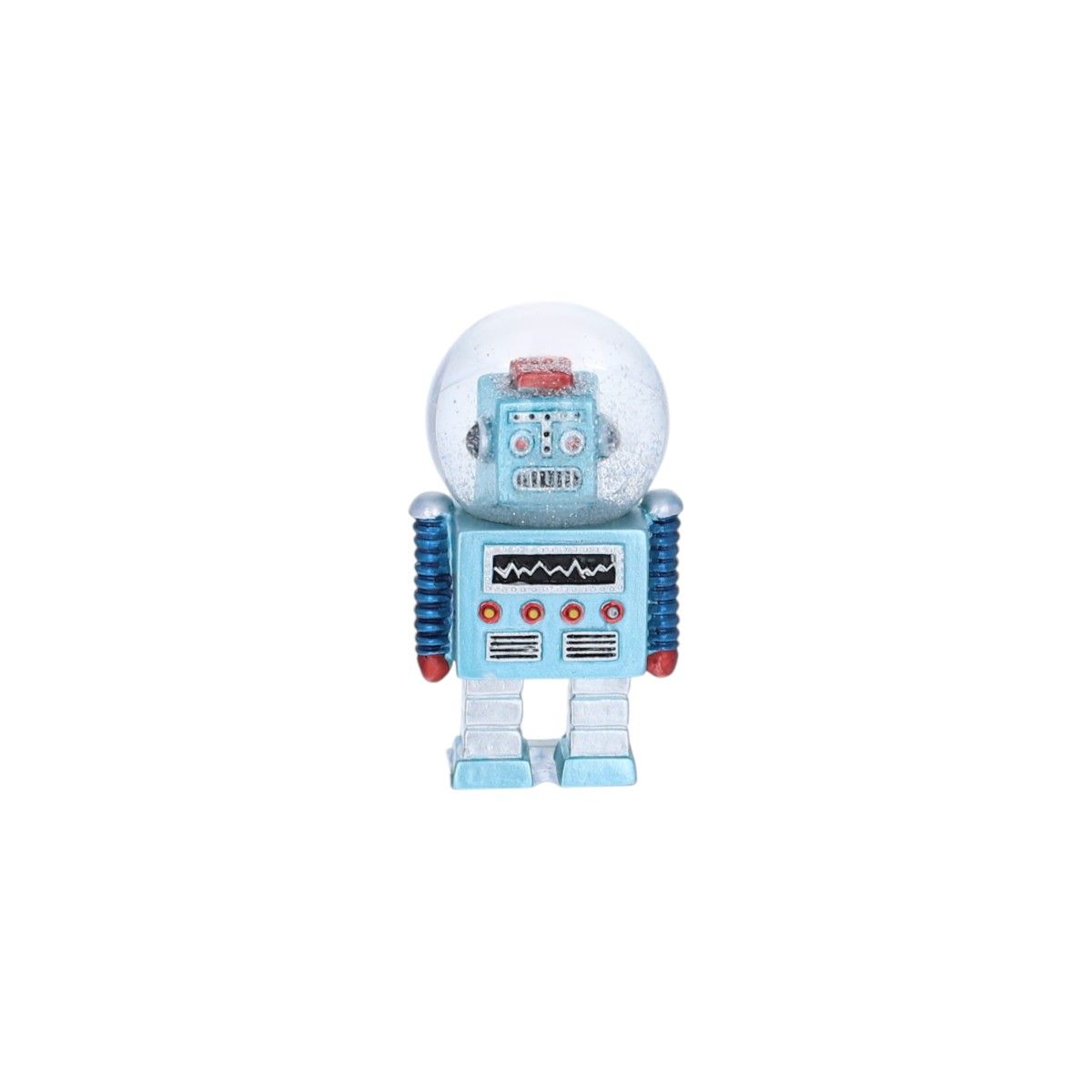 Ξαναζήστε τις αναμνήσεις σας με αυτό το ρεαλιστικό μικροσκοπικό ρομπότ. Το κεφάλι του, μέσα σε μια χιονόμπαλα, μοιάζει με κράνος αστροναύτη... Θα φέρει ένα χαμόγελο σε παιδιά και ενήλικες με την αστραφτερή λάμψη που πετάει με κάθε κούνημα. Η vintage εμφάνιση και το φωτεινό χρώμα του σίγουρα θα τραβήξουν τα βλέμματα των παιδιών, καθιστώντας το ένα φανταστικό δώρο. Αυτή η χιονόμπαλα-ρομπότ είναι ένα διακοσμητικό αντικείμενο γεμάτο αγάπη και λάμψη, μια μικρή λεπτομέρεια που σημαίνει πολλά.