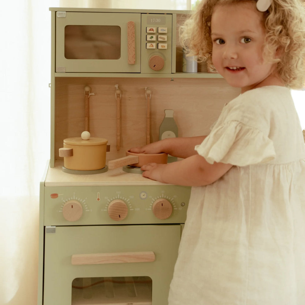 Τα παιδιά λατρεύουν να μιμούνται τους ενήλικες και τις καθημερινές τους ρουτίνες. Αυτή η κουζίνα θα είναι ένα όνειρο που γίνεται πραγματικότητα για τους μικρούς σεφ. Εμπνέει παιχνίδι ρόλων, δημιουργικότητα, κινητικές δεξιότητες και φαντασία.