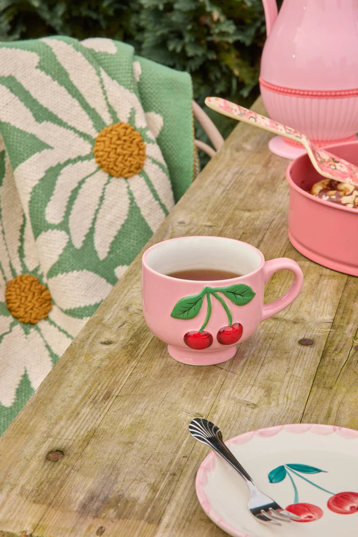 Κεράσι στην κορυφή. Ή... πάνω από το φλιτζάνι, ξέρετε! Η όμορφη, ροζ κεραμική κούπα μας με σχέδιο από κεράσια που ωρίμασαν στον ήλιο είναι ιδανική για όσους από εσάς αγαπούν τα χρώματα και τα μοναδικά καθημερινά προϊόντα. Χρησιμοποιήστε την για το τσάι σας, τα σνακ, τα κλειδιά σας ή οτιδήποτε άλλο μπορείτε να σκεφτείτε... οι δυνατότητες είναι ατελείωτες!