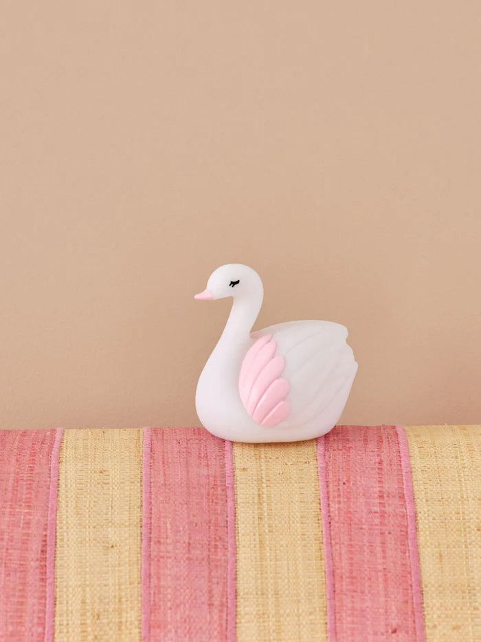 Αξιολάτρευτο μικρό φωτιστικό LED σε σχήμα κύκνου με ροζ φτερά – ιδανικό για να δημιουργήσετε μια ζεστή ατμόσφαιρα όταν παρακολουθείτε ταινίες ή ως ένα χαλαρωτικό νυχτερινό φωτιστικό για τα μικρά σας. Το φωτιστικό διαθέτει μπαταρία, επομένως είναι έτοιμο να λάμψει αμέσως μόλις το βγάλετε από τη συσκευασία.