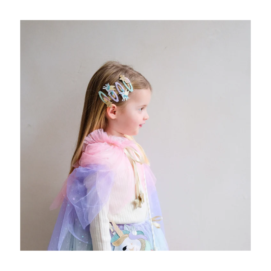 Τα My Little Unicorn Clic Clacs είναι μαγευτικά κλιπ μαλλιών με σχέδιο μικρών μονόκερων, ιδανικά για να προσθέσουν μια παιχνιδιάρικη και φαντασμαγορική πινελιά σε κάθε χτένισμα. Το κλιπ “clic clac” εξασφαλίζει σταθερό κράτημα χωρίς να βαραίνει ή να τραβάει τα μαλλιά. Ταιριάζουν τέλεια σε κοτσίδες, πλεξούδες ή χαλαρά μαλλιά, φέρνοντας χρώμα, λάμψη και μια αίσθηση μαγείας. Είναι το τέλειο αξεσουάρ για καθημερινή χρήση ή για πιο ξεχωριστές εμφανίσεις γεμάτες φαντασία.