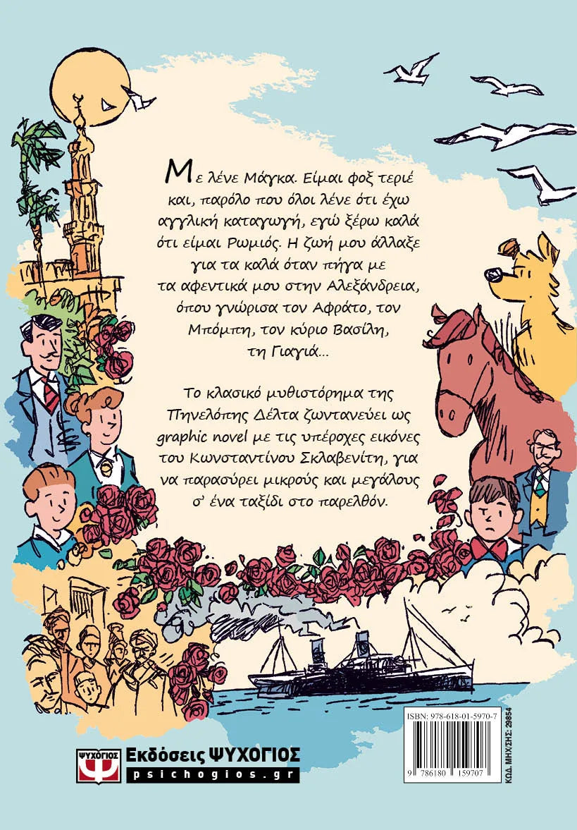 Με λένε Μάγκα. Είμαι φοξ τεριέ και, παρόλο που όλοι λένε ότι έχω αγγλική καταγωγή, εγώ ξέρω καλά ότι είμαι Ρωμιός. Η ζωή μου άλλαξε για τα καλά όταν πήγα με τα αφεντικά μου στην Αλεξάνδρεια, όπου γνώρισα τον Αφράτο, τον Μπόμπη, τον κύριο Βασίλη, τη Γιαγιά…