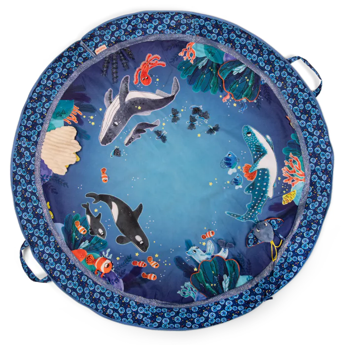 Ένα μαλακό, καπιτονέ χαλάκι παιχνιδιού για ατέλειωτο tummy time με τον χταπόδι Paulie και τους φίλους του. Καθρέφτης, κουδούνι, τσαλακωμένο χαρτί, τρουκ... μια σειρά από δραστηριότητες με έντονα χρώματα και υφές θα βυθίσουν το μωρό στον υποβρύχιο κόσμο. Για βολική χρήση, το χαλάκι διπλώνει στη μέση και κλείνει με φερμουάρ!