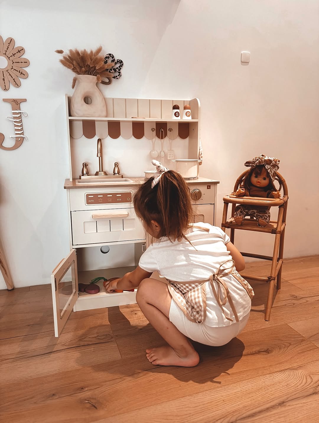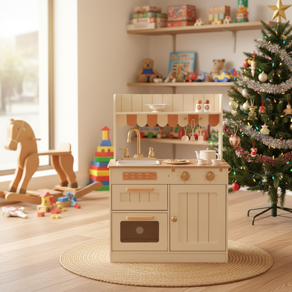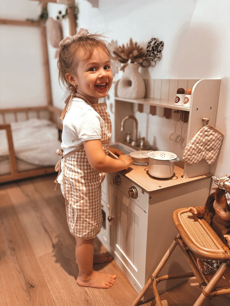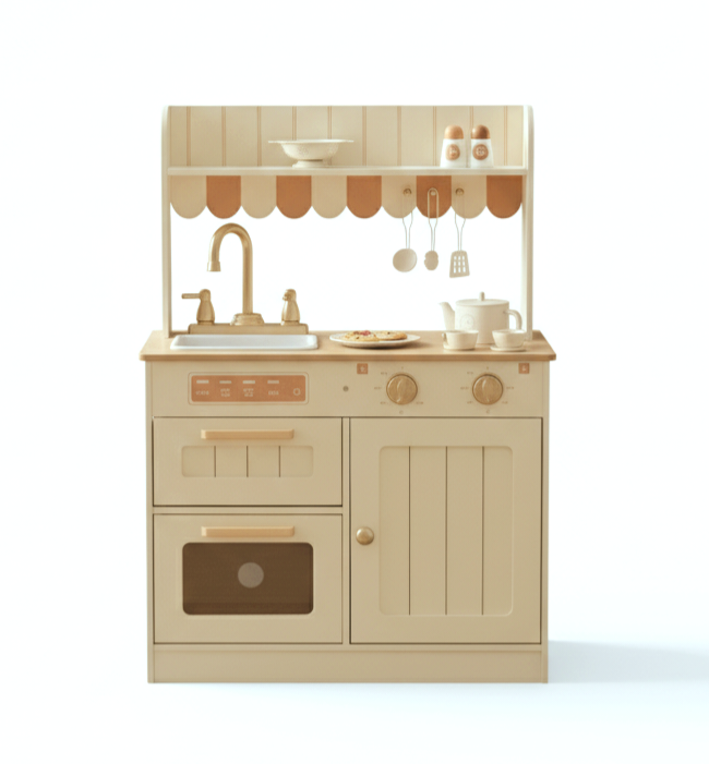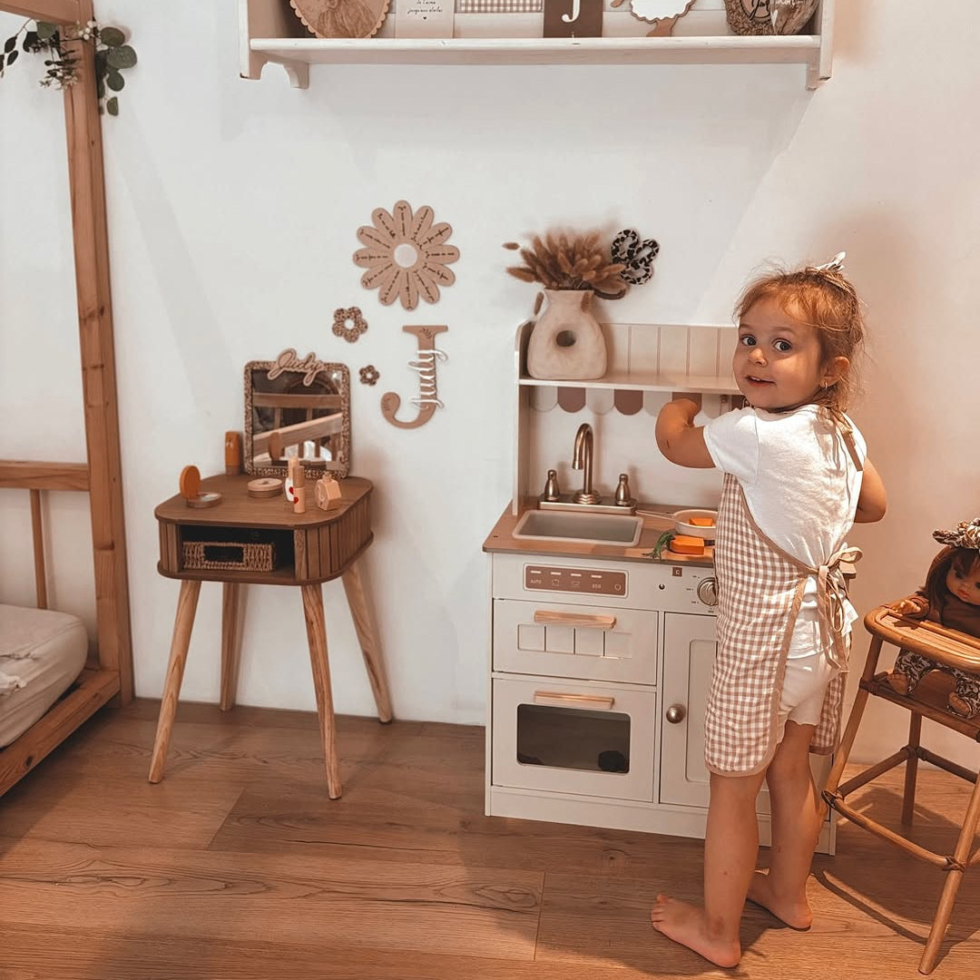 Παιδική Ξύλινη Κουζίνα σε Κρεμ Χρώμα με Ρετρό Αισθητική