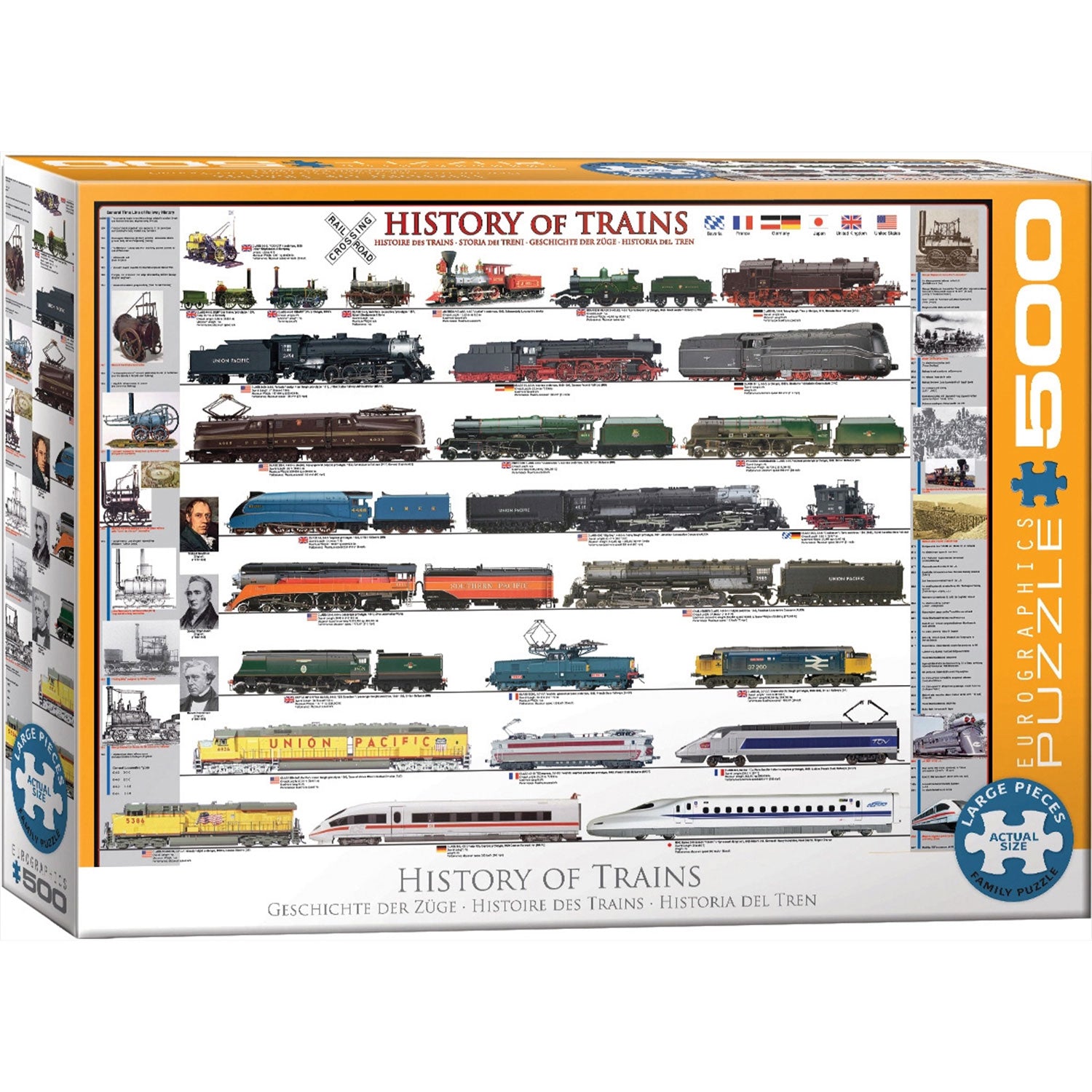 Discover the fascinating story of railways with the History of Trains Puzzle – a 500-piece journey through time, perfect for train enthusiasts and fans of railway heritage.