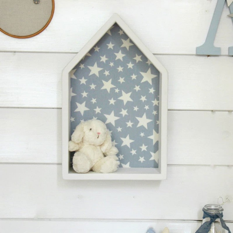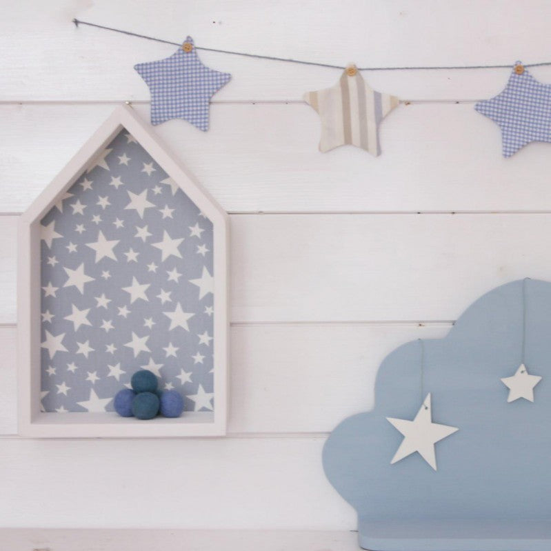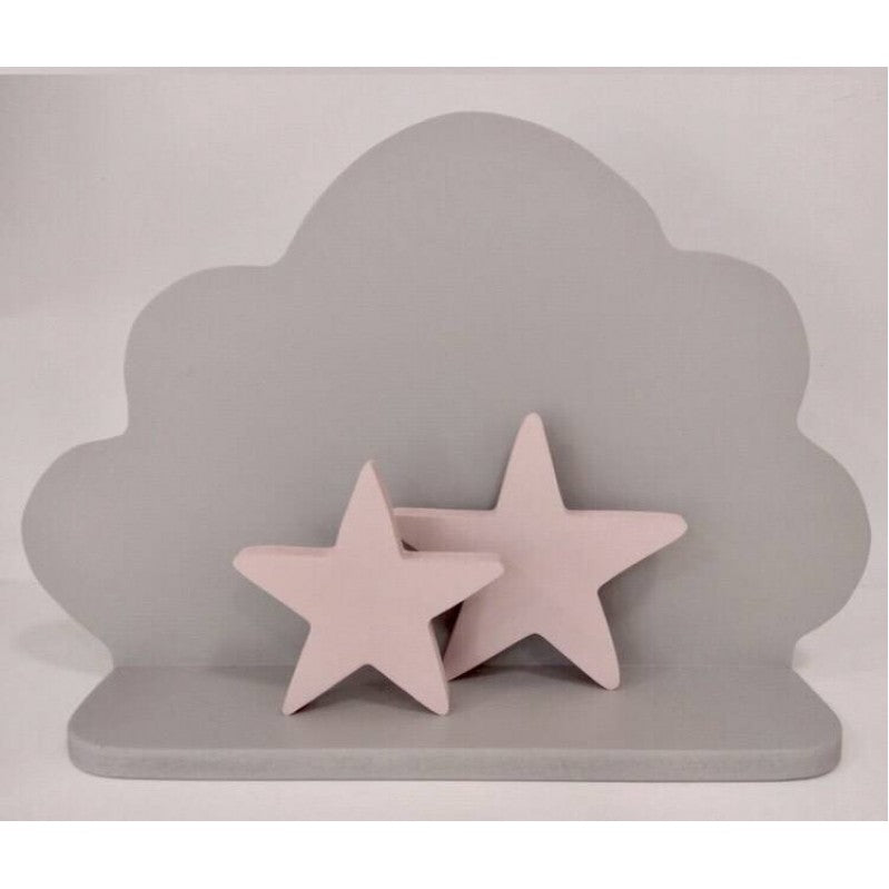 Wooden shelf for children's room house with pink stars 25 x 39cm-Vintage Lovers