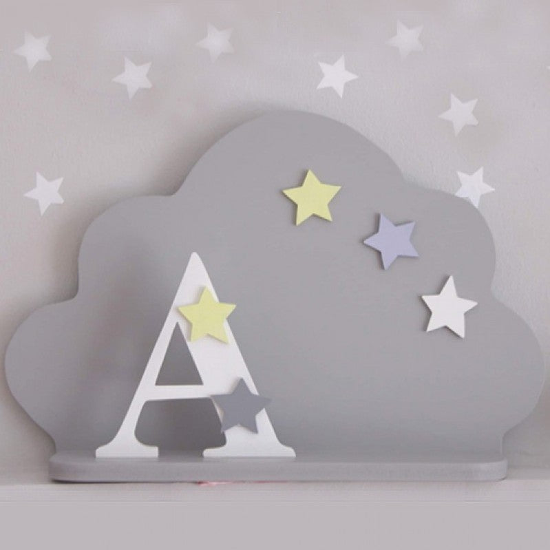 Wooden monogram for children's room gray with stars yellow white-K-18cm