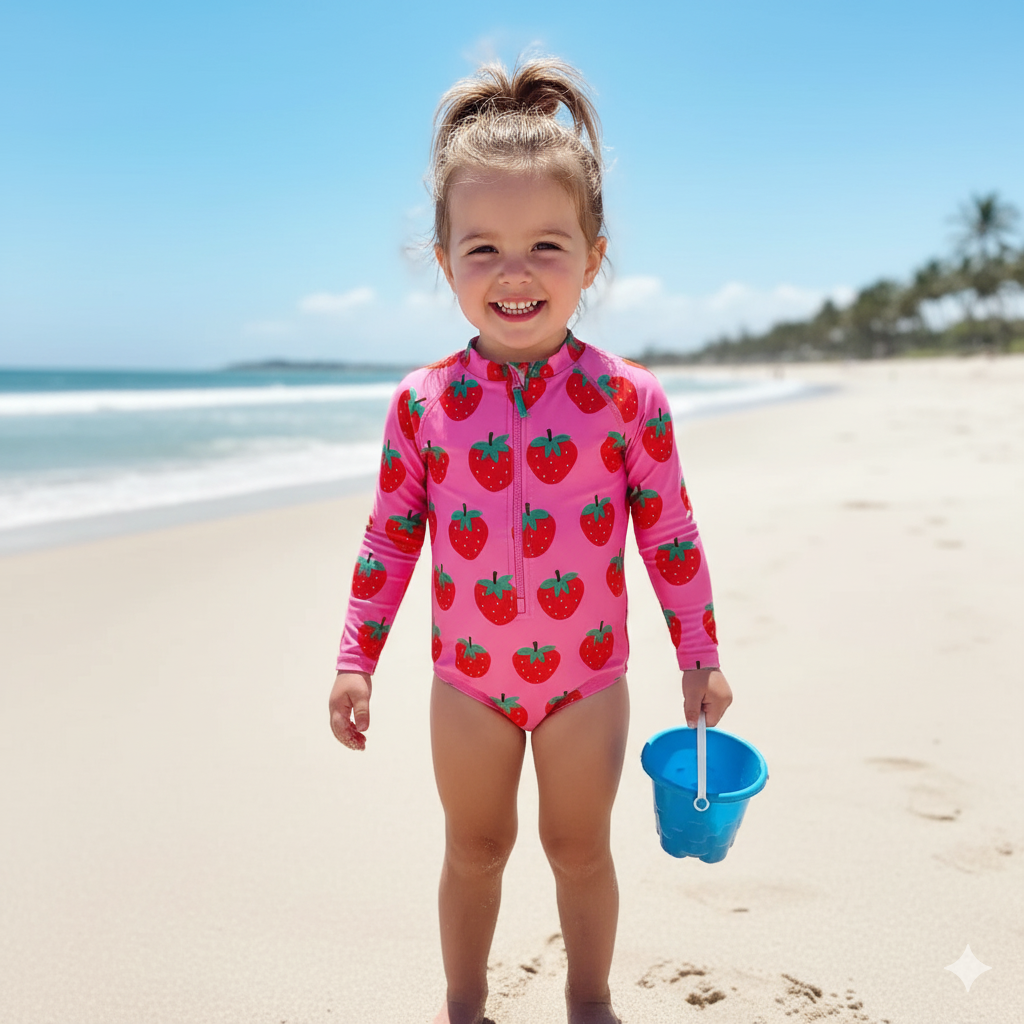 Παιδικό ολόσωμο μαγιό μακρυμάνικο Strawberry με προστασία UPF50+ 2-8Y Toby Tiger