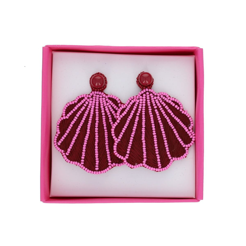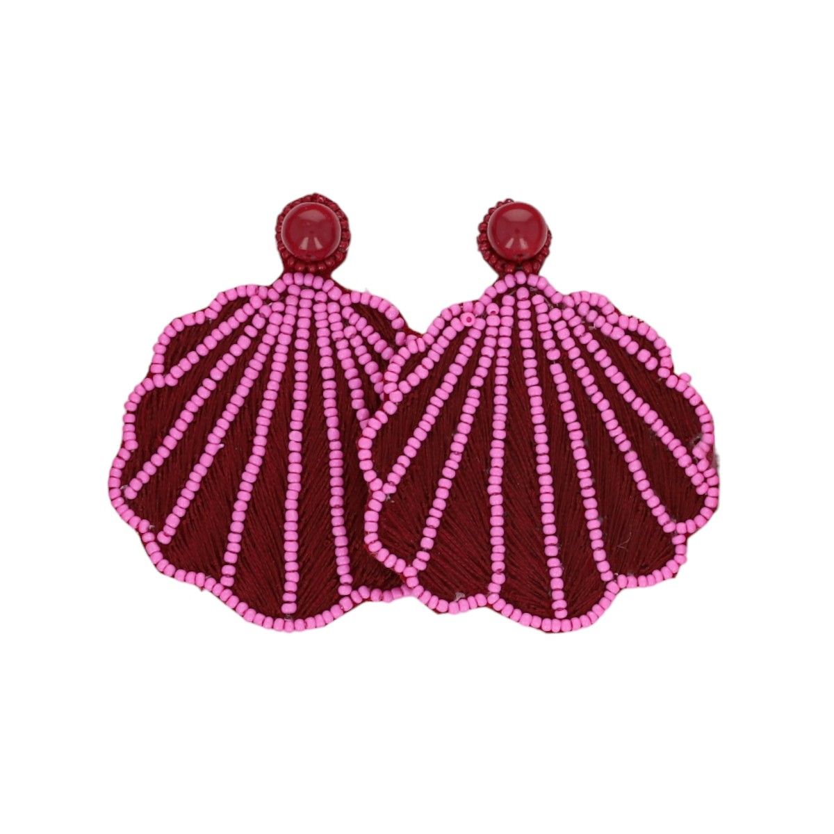 These bold earrings are made of beads and fabric that form a shell, adding a touch of style and elegance to your look. The shells will shine and highlight your complexion, adding a touch of charm and style to any outfit.