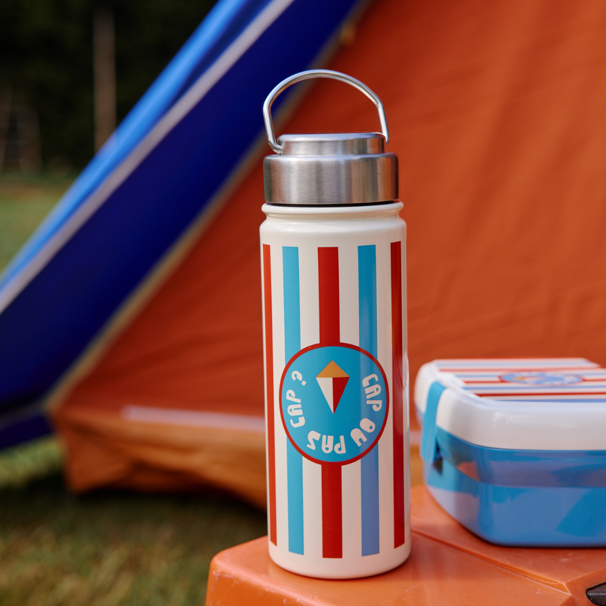 This beautiful striped water bottle will be perfect for summer or winter, keeping your favorite drink hot or cold! Thanks to its 550 ml capacity and airtight lid with handle, it is ideal for holding, and you will have enough water at your fingertips to quench your thirst.
