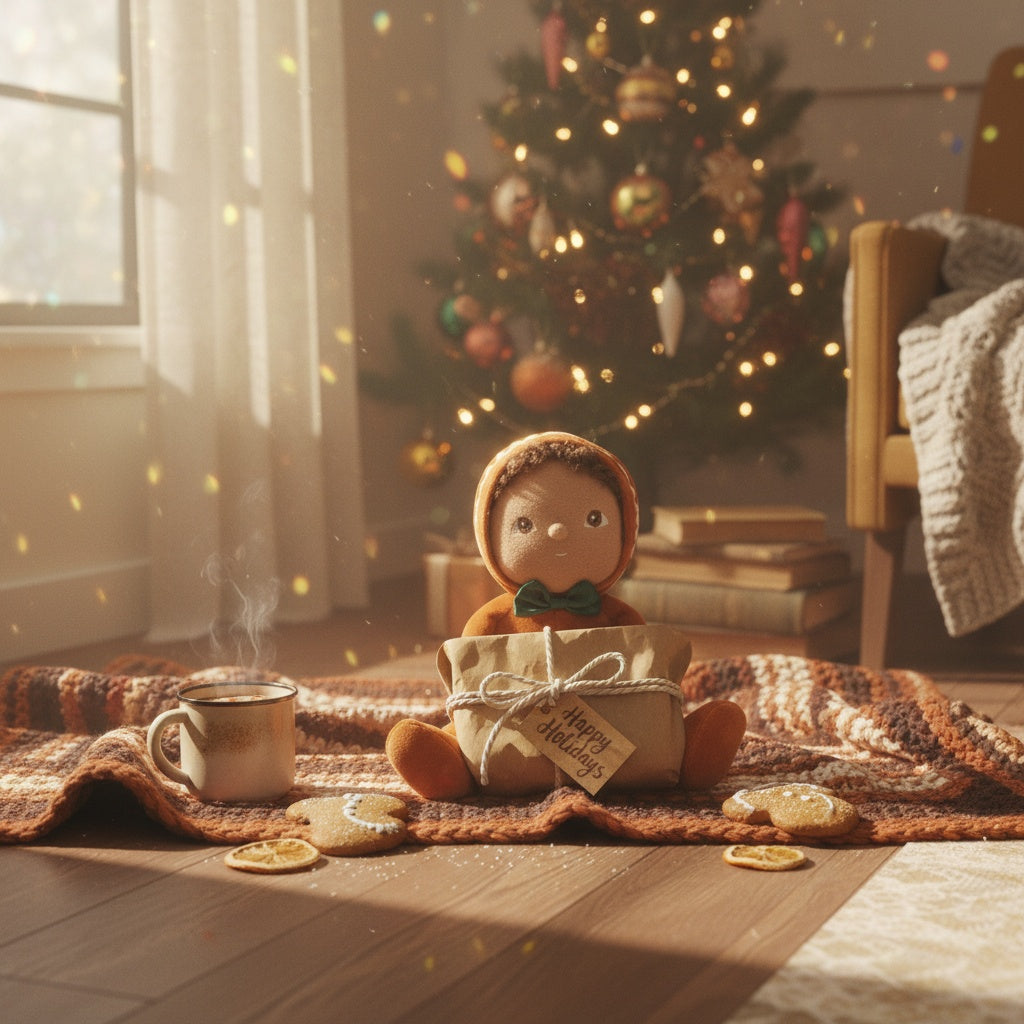 Meet Georgie Gingerbread, the sweetest little friend around! With a frosting-swirled smile and warm, cinnamon swirled hugs, Georgie loves to spread holiday cheer. Always ready for a cozy cuddle or an adventure through the candy cane forest, Georgie is the perfect companion to make every day feel like a holiday.