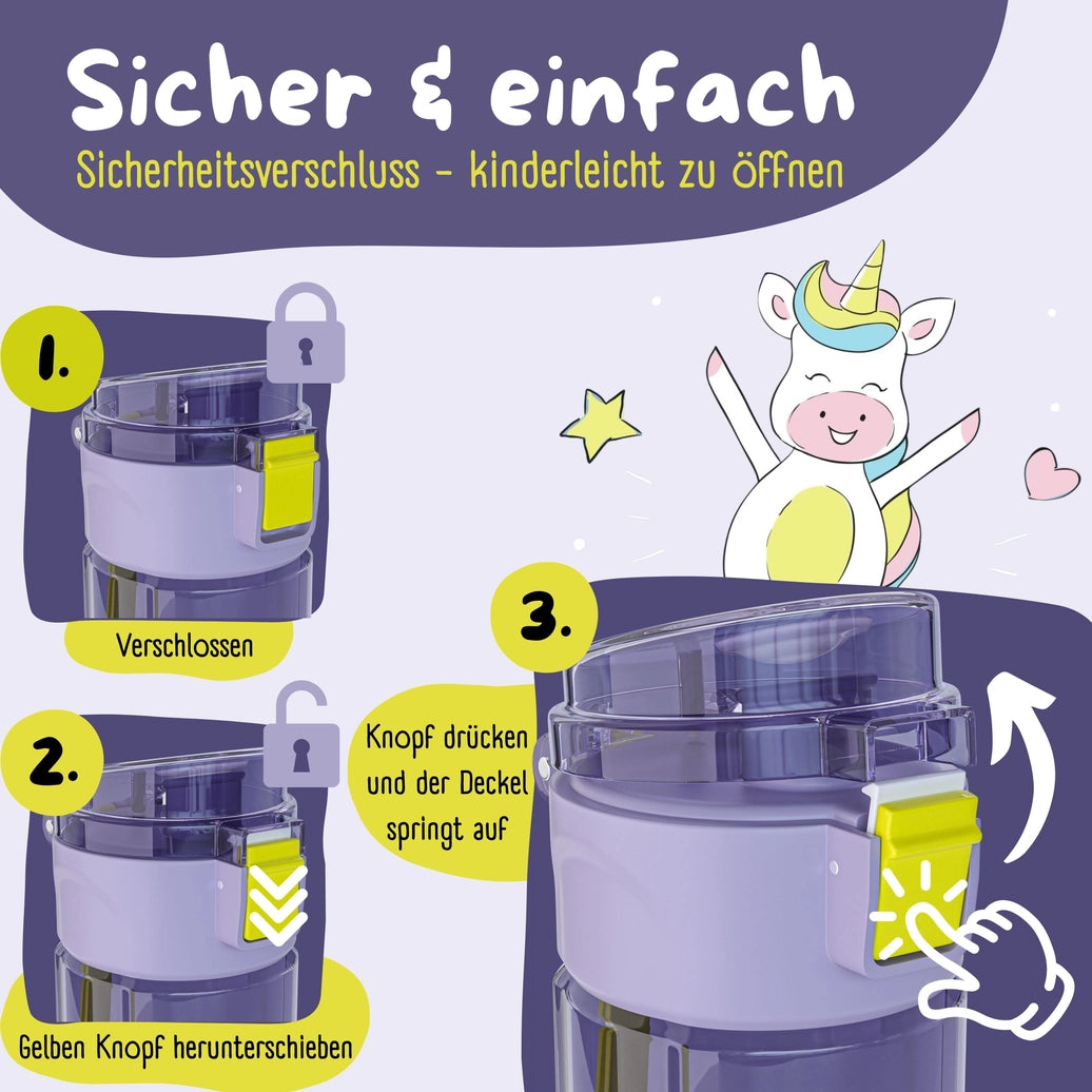 Discover the magical world of drinking with our mood scale. The bottle presents a unique scale of 100-500ml, decorated with cute animal friends in different moods. Children are motivated to drink more by the happy faces.