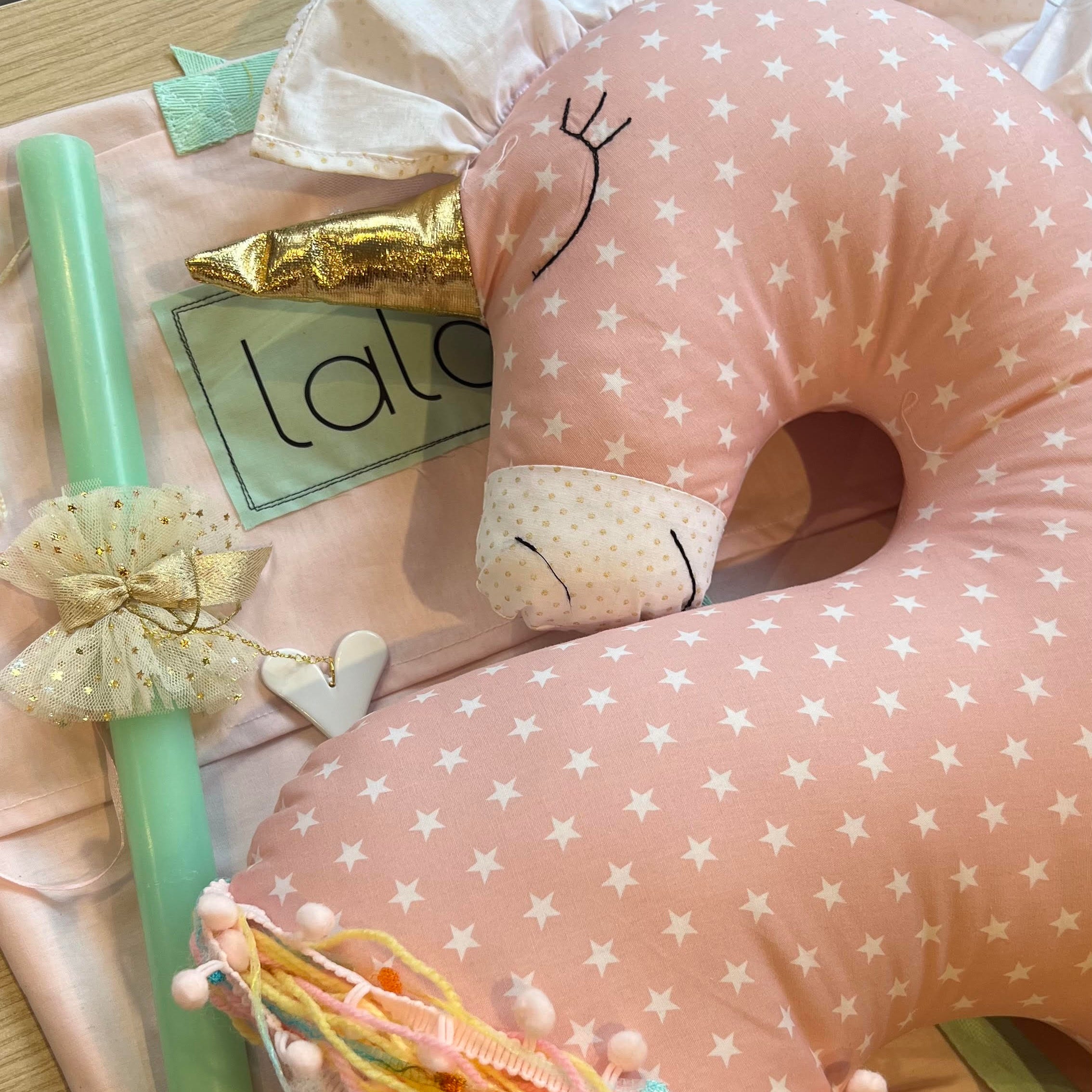 Χειροποίητη Πασχαλινή λαμπάδα ροζ Μονόκερος 52cm Luxury set