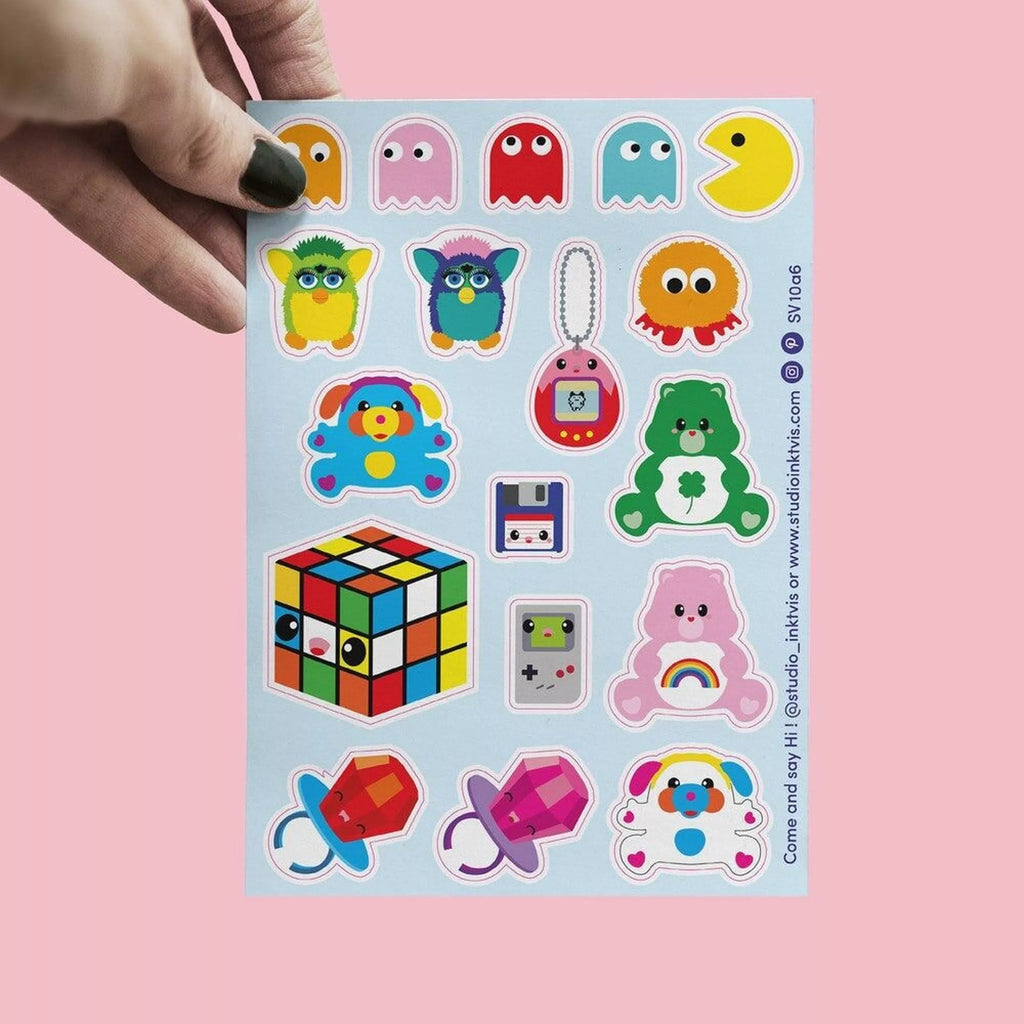 Δώστε μια παιχνιδιάρικη ρετρό πινελιά στη ζωή σας με αυτό το μοναδικό φύλλο αυτοκόλλητων!