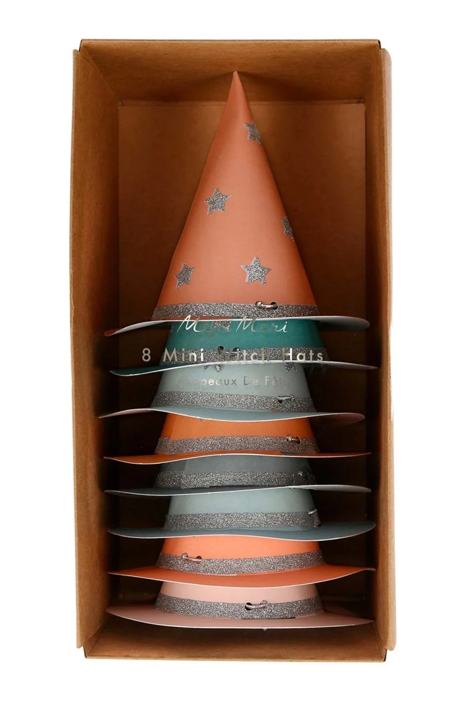 Αυτά τα υπέροχα καπέλα μάγισσας είναι τέλεια ως καπέλα για πάρτι για το Halloween. Το πακέτο περιλαμβάνει μια επιλογή χρωμάτων, με το καθένα διακοσμημένο με ασημένια glitter αστέρια και ένα αστραφτερό περίγραμμα.