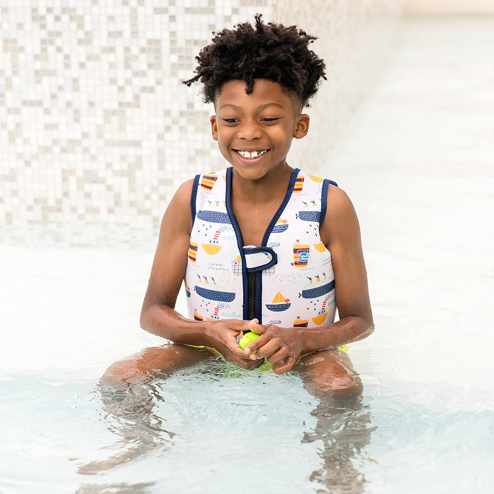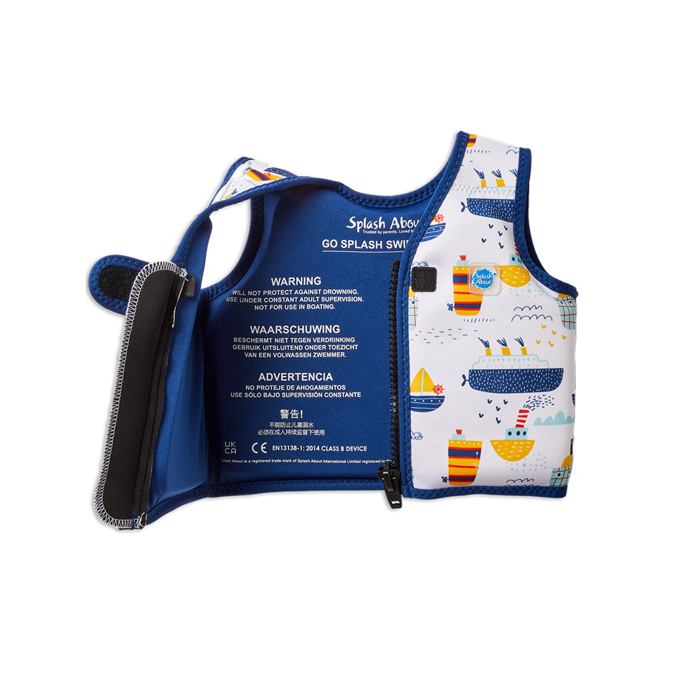 Ένα γιλέκο κολύμβησης είναι το καλύτερο αξεσουάρ για κάθε γονιό που θέλει να βοηθήσει το παιδί του να μάθει να κολυμπά για πρώτη φορά. Το συγκεκριμένο γιλέκο της εταιρείας Splash About, είναι ιδιαίτερα ελαφρύ και στοχεύει στην εξοικείωση του παιδιού με την κολύμβηση και την ασφαλή επαφή με το νερό και είναι κατάλληλο από αρχάριο στάδιο. Κατασκευασμένο από μαλακό και ανθεκτικό ύφασμα neoprene, παρέχει άνεση, αντηλιακή προστασία αλλά και θερμότητα στην κρύα θάλασσα. Στο μπροστινό μέρος του ασφαλίζει με φερμουάρ, το οποίο το καθιστά ιδιαίτερα σταθερό παραμένοντας στη σωστή θέση σε σχέση με το σώμα.