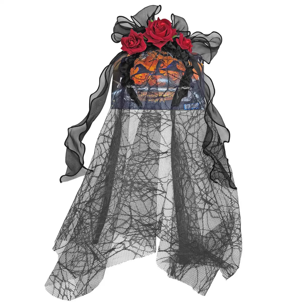 Στέκα με μαύρο πέπλο με κόκκινα τριαντάφυλλα και λεπτομέρειες ιστού αράχνης – το ιδανικό αξεσουάρ για να ολοκληρώσει τη μεταμφίεση μικρής μάγισσας, σκοτεινής πριγκίπισσας ή νεράιδας του Halloween!