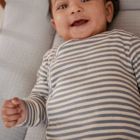 Αυτό το ολόσωμο φορμάκι αγκαλιάζει το μωρό σας με απαλότητα από την κορυφή ως τα νύχια. Με διακριτική ριμπ υφή σε όμορφη μπλε-κρεμ απόχρωση και πρακτικό κρουαζέ άνοιγμα για εύκολο ντύσιμο, είναι ιδανικό για τις πρώτες μέρες.